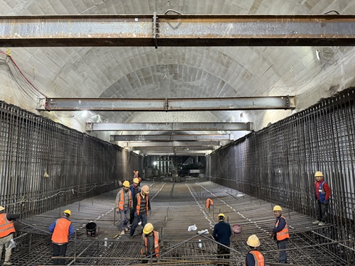 在騾馬市站至騾省風井區(qū)間,面對多專業(yè)交叉作業(yè)、鋪軌進度制約整體工期的挑戰(zhàn),總包部以精細化統(tǒng)籌管理全力破局。通過全面推“無軌施工”技術,實現(xiàn)了在隧道區(qū)間具備條件后,立即組織站后各工區(qū)開展無軌先行作業(yè),此舉擺脫了對傳統(tǒng)鋪軌進度的依賴,從而最大化釋放作業(yè)空間與時間潛力,成功突破施工進度瓶頸,最終促成多作業(yè)面的高效協(xié)同,為沖刺年度目標注入強勁動能。